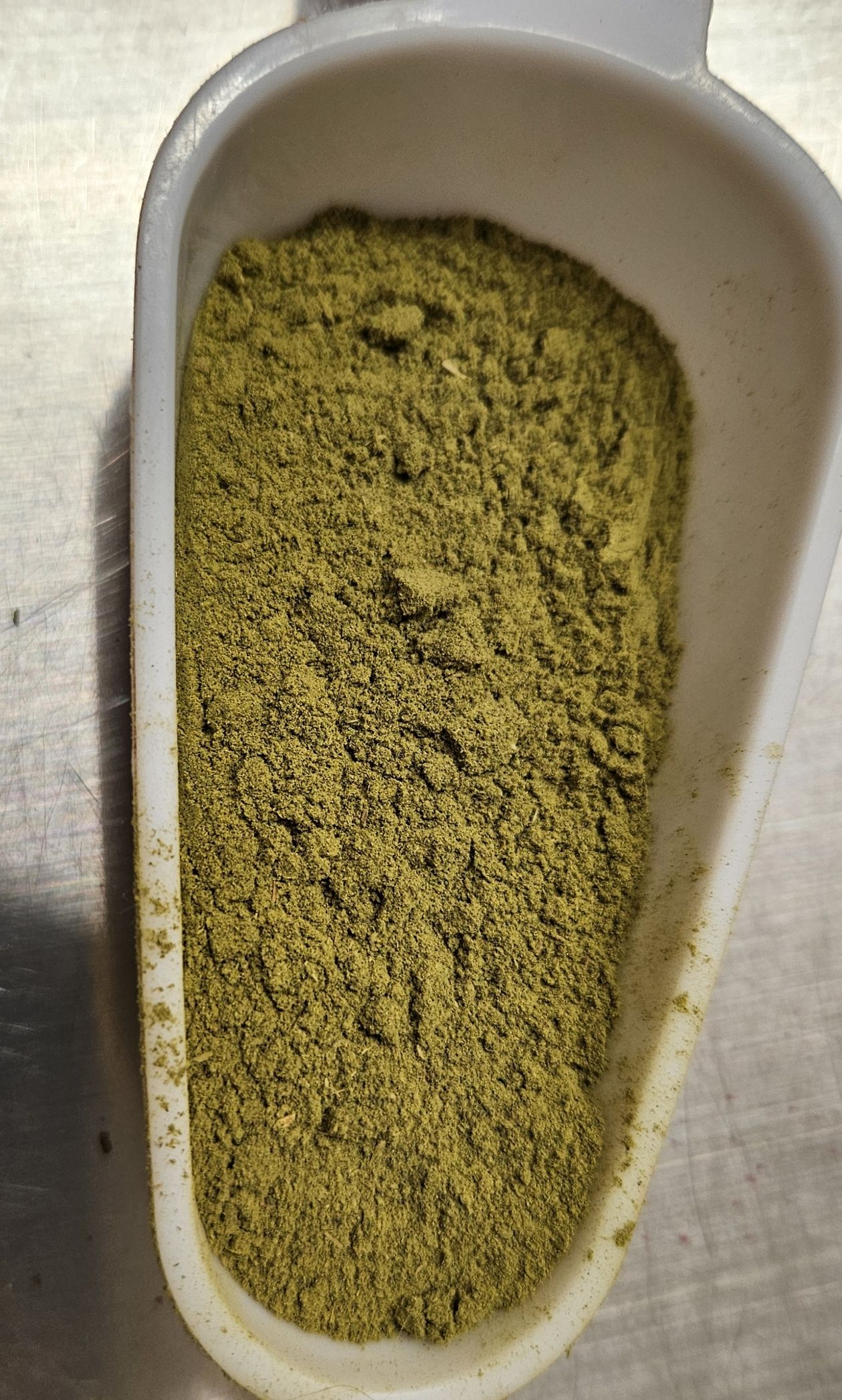 For storage, the leaves are cool dried (to prevent loss of essential oils) and then ground and stored in a cool, dry manner for later use.