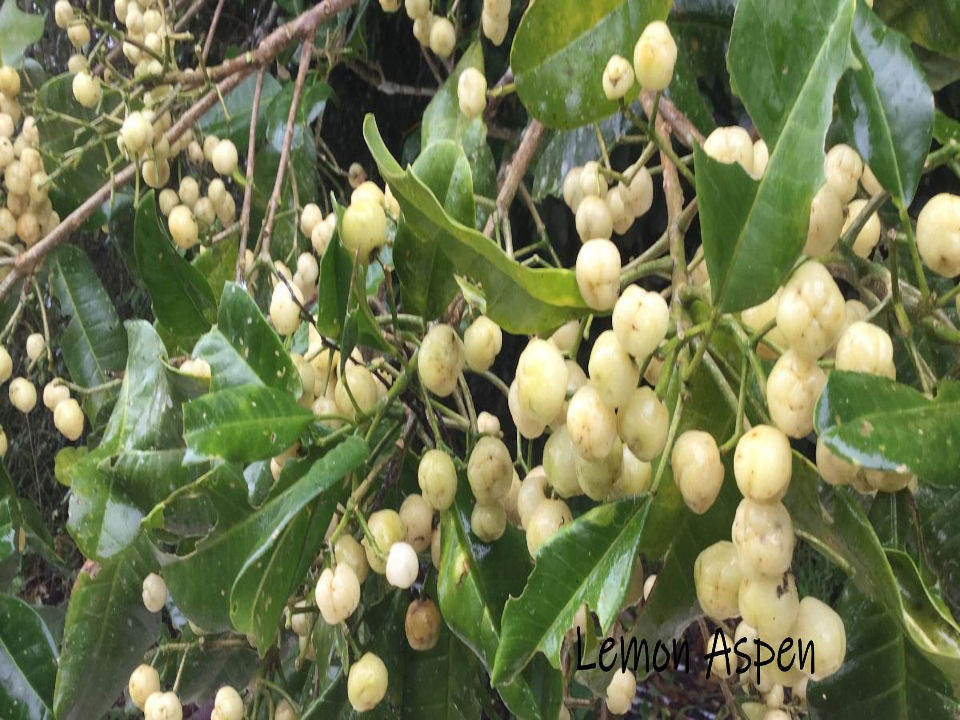 Lemon Aspen has a wonderfully tart lemon taste with a hint of grapefruit. It works well with Quandongs and Muntries. They need to be picked slightly underripe.